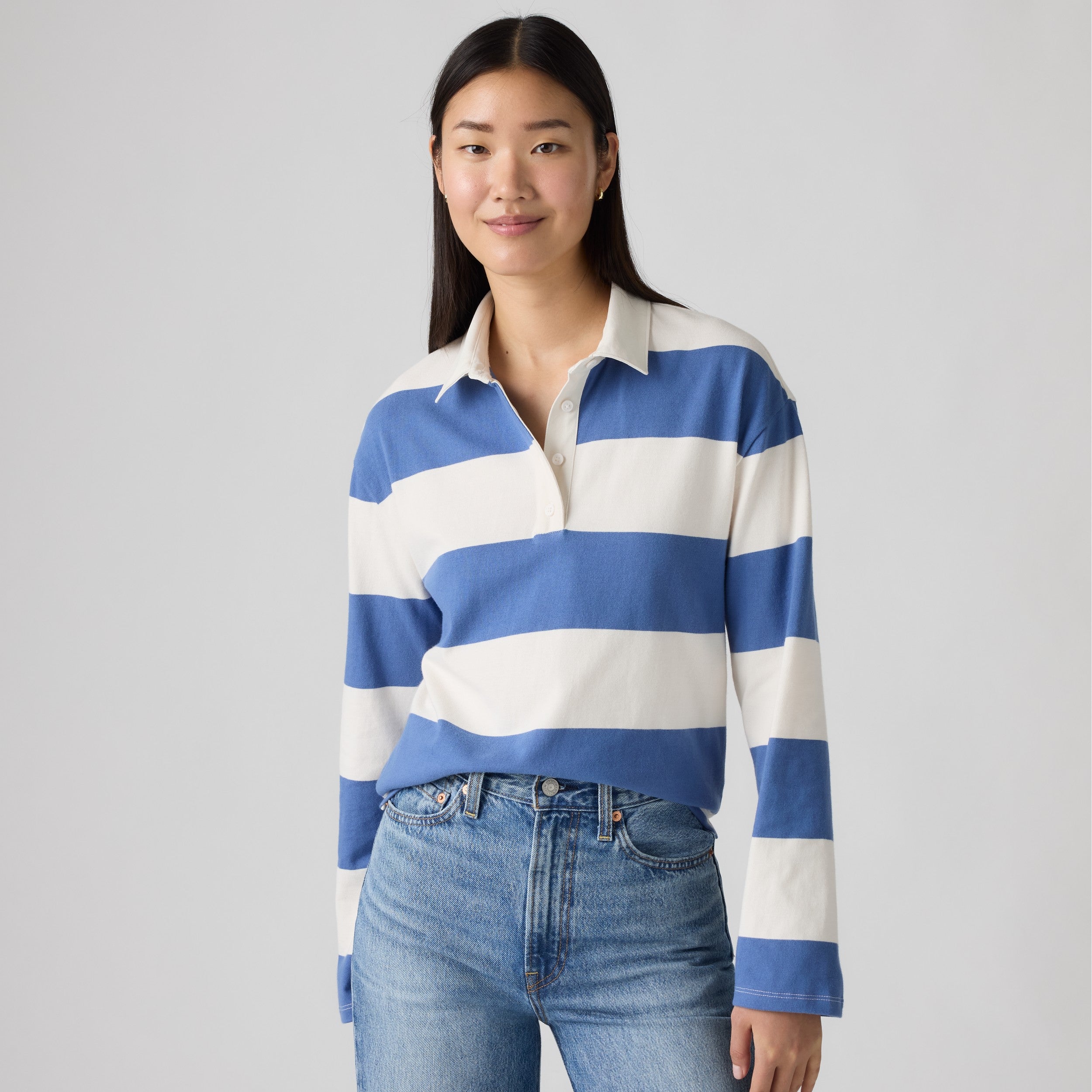 Step right into the sporty-meets-vintage aesthetic with our Leda Rugby Shirt. Cut with a relaxed fit, we gave it a button-up collar and a classic striped design.